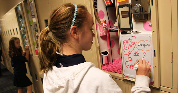 Though she gives a nod to reflective comments from Rachel Simmons and to Deborah Kasak from National Forum to Accelerate Middle-Grades Reform Ms. Gootman is an uncritical enthusiast for this trend. She ignores her own information, such as: the founders of LockerLookz said they got the idea for the company “after decorating their daughters ’lockers” and mother Melissa Kane said: “Doing her locker just helped me ease my nerves a little bit” about her daughter’s transition to Middle School.” A “world of their own,” indeed. Putting myself in the shoes of these young girls, I’d be tempted to have a sign “Keep Out – Mom and Marketers.”